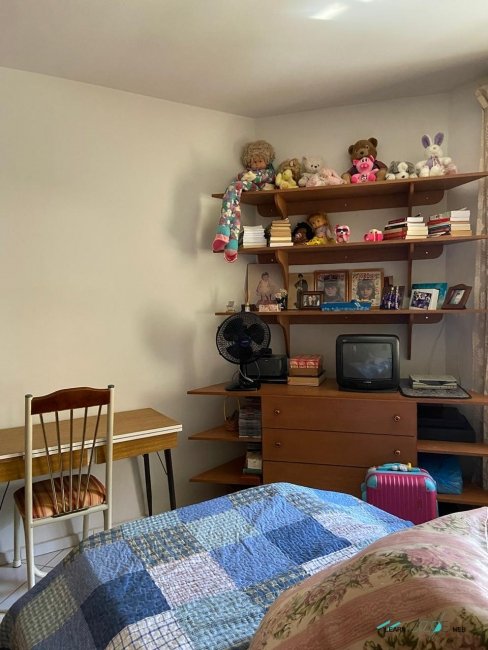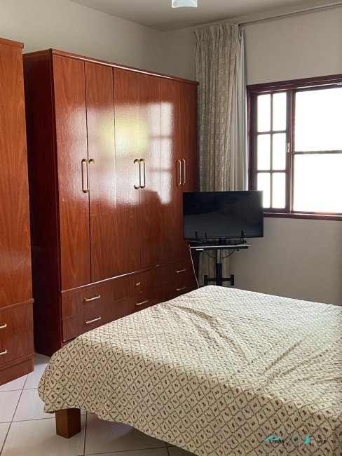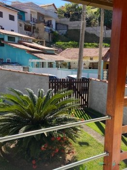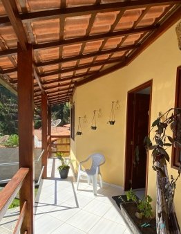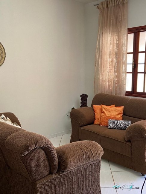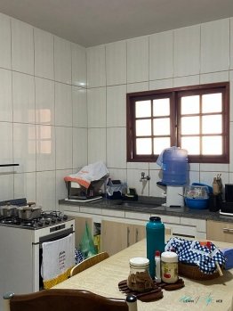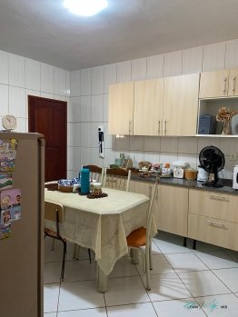 Casa residencial de 02 quartos com armários embutidos, sala, banheiro social com armário embutido, cozinha com armários embutidos, com uma extensão de área de serviço com um quarto externo e garagem.